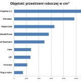 Niedawno opublikowaliśmy szczegółowe porównanie dostępnych domowych drukarek 3d. Gdy zestawić drukarki z tego porównania pod względem objętości prostopadłościanów w których muszą się zamknąć wydruki rzecz przedstawia się następująco.