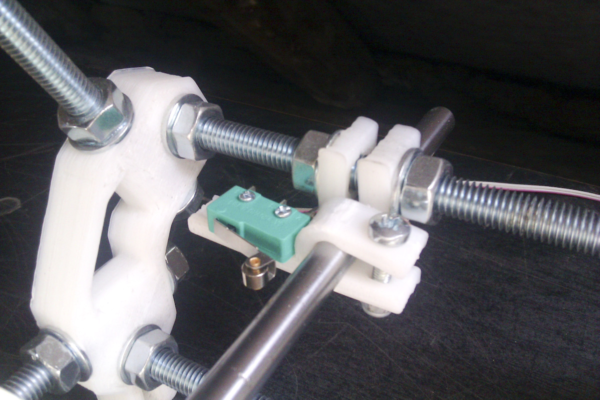 Sposób mocowania mechanicznego endstopa (oś Y). Wózek przyciska włącznik gdy pojedzie za blisko końca prowadnicy.
